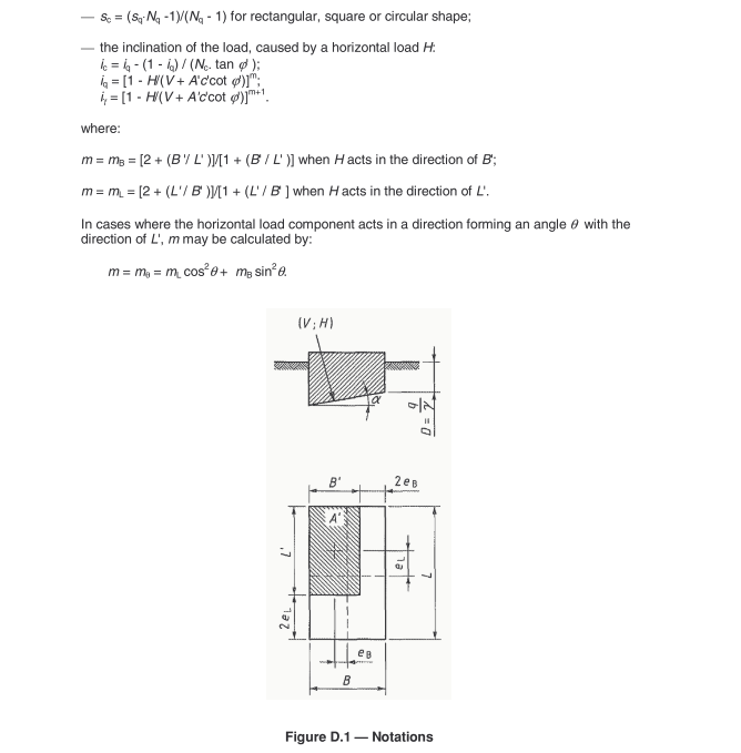 Eurocode 7 adopts the classical Terzaghi-Meyerhof form of the bearing capacity equation, extended with correction factors for shape, load inclination, and foundation depth.